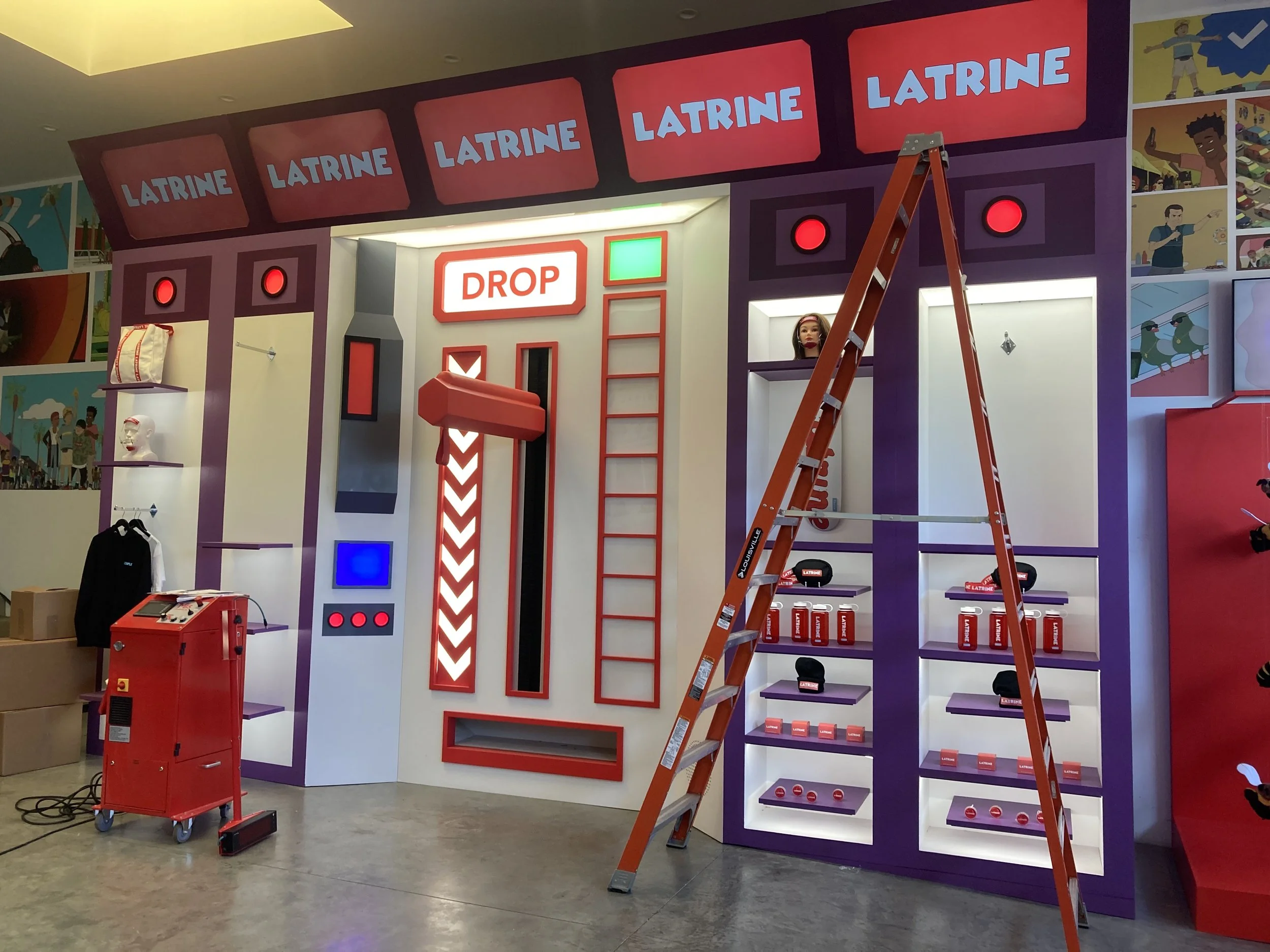 We have partnered with different companies to build a variety of components for set builds. From entire set walls to smaller, functional set pieces, Eiji has built it. Below are some projects I was able to snag pictures from. Because of our versatility in the fabrication world, we can be involved in smaller, more detailed technical components, such as the LED Bug Zapper pictured below (for Lone Star Seltzer), as well as full scale set construction. Trained in many different disciplines of fabrication, we can bring visions to life.